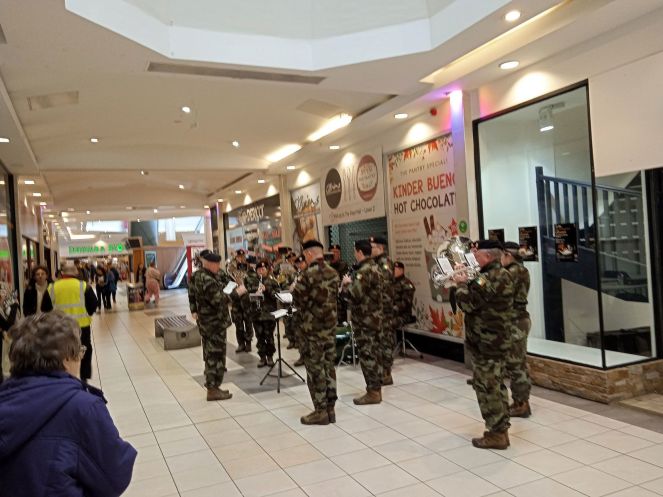 А на первом этаже многоэтажного здания парковки - в торговом центре, расположился военный оркестр, готовый к очередной порции исполнения «живой музыки в виде рекламы будущего концерта». По всем признакам период отдыха оркестрантов подходил к концу.