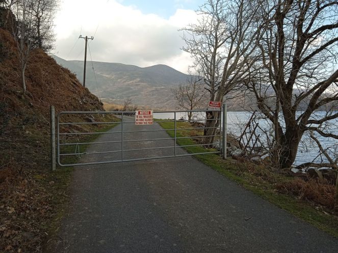 Довольно узкая дорога, ограниченная с одной стороны зарослями остролиста, ежевики и других колючек, а с другой – берегом озера, упиралась в ограждение с вполне недвусмысленным предупреждением.