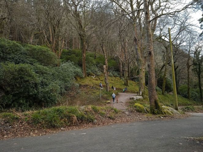 По моим понятиям сезона ранней весны, каковым является февраль в Ирландии, в парке, находящемся вдали от больших населённых пунктов, не должно было быть много посетителей. Но я оказался неправ - на тропе к водопаду была, конечно, не «первомайская демонстрация», но «плотность населения» приближалась к среднестатистическому потоку прохожих в родном Зеленограде в будний день.