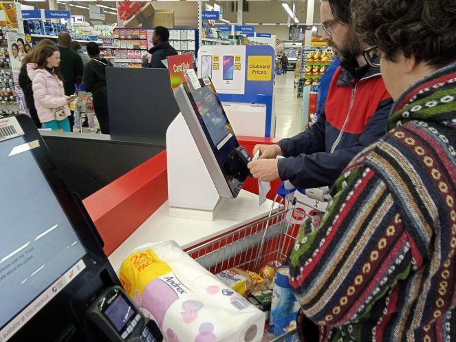 А Костя продемонстрировал мне современный подход к оплате товаров в большом сетевом магазине.