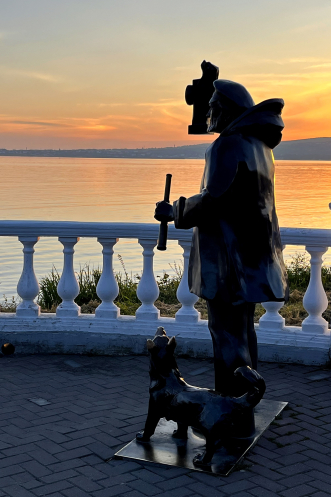 2) Створный маяк (малая группа сильно жаждала его обозреть отдельно) – постройка 1897 года, правильно именуемая «здание переднего створа маяка», в котором до сих пор используются отражатели из горного хрусталя, а сам маяк светится красным и зелёным светом, сама видела, а также сама слышала, что его свет помог нашему морскому десанту в операции при освобождении Цемесской (Новороссийской) бухты в ВОВ;