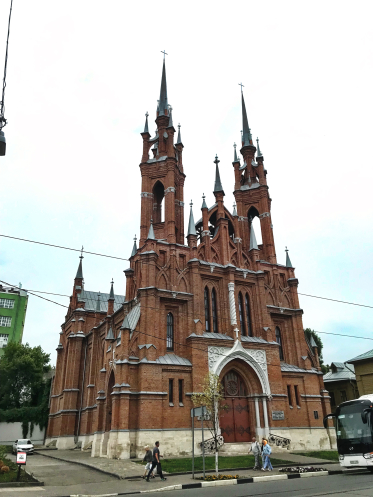 На другой день у нас была обзорка и мы увидели храмы других конфессий. Костёл на ул. Фрунзе, 157 - это «Римско-католическая церковь Пресвятого Сердца Иисуса». Костёл расположен в историческом центре Самары. Очень красивый храм, образец готического архитектурного стиля, в высоту достигает почти 50 метров.