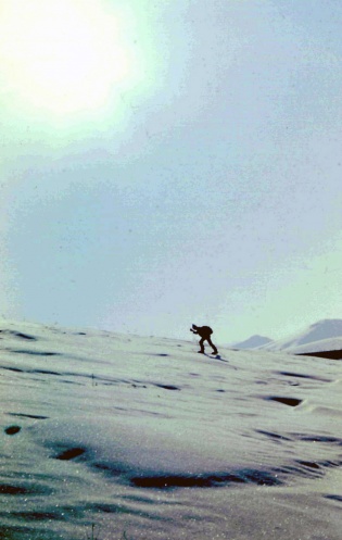 Первый день был относительно легким. Еще не горы, снега не очень много, торить лыжню по переменке довольно легко. Рюкзак, однако! Если упал, то лежа снимаешь рюкзак, выбираешься из снега, потом, кто-нибудь подъезжает и помогает тебе его одеть. Второй вариант – двое подъехавших поднимают тебя вместе с рюкзаком. В общем, к вечеру «уделался» так, что едва смог самостоятельно разоблачиться. Хорошо хоть ребята, которые пришли на место ночевки первыми, поставили палатки и приготовили поесть.