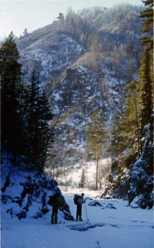 К сожалению, у меня не сохранились черно-белые фотографии с этого похода. Здесь привожу несколько фото, отсканированных со слайдов, снятых в чуть более позднее время в горах Алтая.
