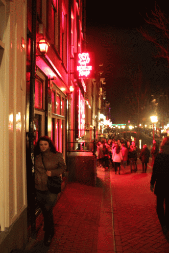 Дамы стоят в окне, подсвеченном красным светом, и ловят клиентов, скажем так, на живца. Кстати, не только дамы, я видела транса в белом кружевном белье – зрелище не для слабонервных. Вообще выбор там огромен: от престарелых афроамериканок до дистрофичных девочек-мальчиков – на любой вкус.