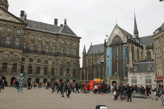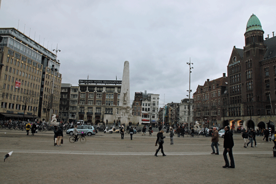 Центральной площадью Амстердама считается площадь Дам (Dam Square), где расположены значимые здания города и проводятся наиболее массовые мероприятия. Именно здесь был построен Королевский дворец, готическая Новая церковь 15 века и Музей восковых фигур Мадам Тюссо. От площади Дам берут свое начало две крупные туристические улицы – Дамрак (Damrak, приставка rak – переводится как порт) и Рокин (Rokin, в переводе «внутренний порт»). Именно здесь толпы веселых туристов днем и ночью снуют туда-сюда, открыто море кафешек, кругом яркие сувенирные магазинчики и манящие девушек известные бренды.