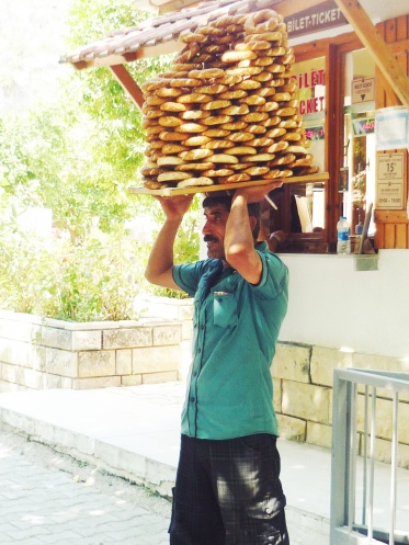 Каждое место на каменных скамьях имело свой номер и каждый человек рассаживался во время представлений согласно купленному билету. В этих окрестностях можно приобрести сувениры, иконки, сумки, сладости и прочее. А также проголодавшись, вы можете перекусить в местной кафешке. Идя к амфитеатру я увидела дядечку с бубликами. Ух, как он мне понравился!