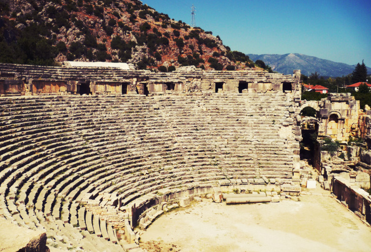К скалам с Некрополем прилегает античный греко-римский амфитеатр. Но сами турки называют его именно Театром.