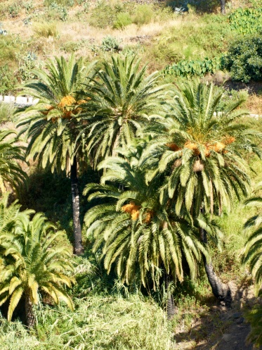 Так же в городе можно купить миндальный хлеб и пальмовый мед. Не смотря на такие простые названия, ни к хлебу, ни к меду эти два вида продуктов не относятся. Миндальный хлеб - это своего рода сухие коржи из смеси миндаля с рубленным инжиром. А пальмовый мед - это сладкий сироп из сока финиковой пальмы, вариться который без добавления сахара. Кстати, канарская финиковая пальма - это единственный эндемик канарских островов. Плоды женских особей совершенно не съедобны, а вот как раз из сока мужских особей варят пальмовый мед.