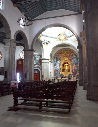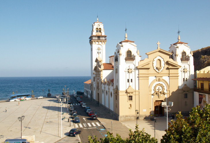 Последняя остановка - город Канделярия. Паломнический центр острова Тенерифе. На набережной города расположилась базиликка Basílica y Real Santuario Mariano de Nuestra Señora de la Candelaria. Черная Мадонна - это не икона! Это статуэтка. По местному преданию ей поклонялись еще местные жители до прихода сюда испанцев в 15 веке. И по сей день она считается покровительницей Канарского архипелага. Дважды в год (2 февраля и 15 августа) на Канарах отмечают большой праздник в честь девы де-ла-Канделярия. В ночь с 14-го на 15-ое августа церковь остаётся открытой и её посещают тысячи паломников со всех Канарских островов. рядом с базиликой стоят 9 скульптур вождей местного населения Гуанчей.