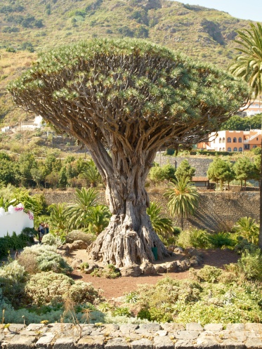 Следующая остановка в городе Icod de los Vinos. Тут мы задержимся на час-два. Достопримечательности города: "шагающий фикус", драконовая драцена (самая старая и высокая драцена в мире), музей бабочек. Все это расположено у центра города. И как следуют из названия, самая большая достопримечательнось - это местные вина. Праизводятся они из редкого винограда сорта Malvasia (в период виноградной чумы этот сорт полностью вымер в Европе, сейчас произрастает только на Канарах и на Мадейре). Недавно открылся музей вина Museo de Malvasia. Тут можно продигустировать вина, которые не поступают в массовую продажу. В том числе и любимое вино Шекспира - Canary. Стоимость вин примерно от 15 до 45 евро, сухой ром десятилетней выдержки обойдется в 25 евро. Казалось бы смешные цены, но это по московским меркам с нашими бешенными налогами на алкоголь. Обычное вино в магазине на Канарах стоит 1-2 евро за бытылку.