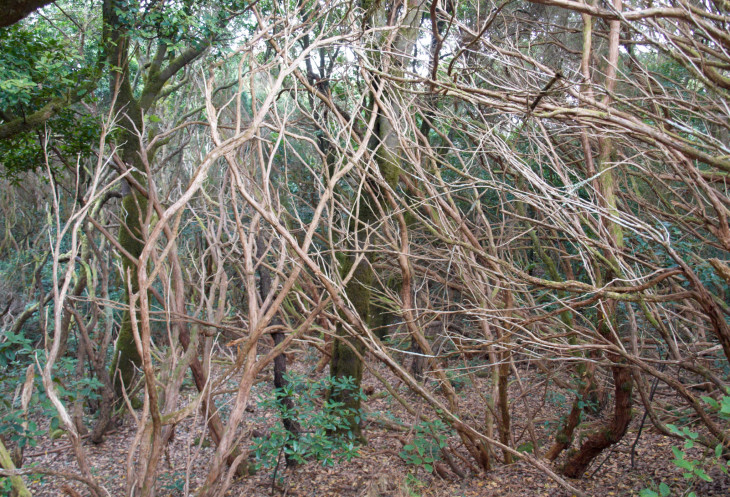 Так как у нас оставался последний день, из лесов Эсперанза мы поехали прямо через Ла Лагуну на гору Анага (по направлению на Las Mersedes). Помните вересковые леса на Ла Гомере? Их можно увидеть и на Тенерифе. Возможно, тут лес не такой большой и разнообразный, но мы (не ботаники) не увидим существенной разницы. Если бы я знала о том, что ожидает меня в природном заповеднике Parque Rural Anaga, скорее всего я отказалась бы от поездки на Ла Гомеру и провела целый день здесь. Многие говорят, что дорога на Таганану (через леса Анаги) - это место, где встречается небо с землей. Оказавшись на высоте около кимометра над уровнем моря Вы попадаете в зону облаков. На северном склоне висит туча, на южном светит солнце, а у Вас перед глазами движется туман. Именно движется! Облако перекатывается через хребет и рассеивается на южной стороне. Очень жаль, что на сайте нет видео-контента. На фото Вы увидете простой туман.