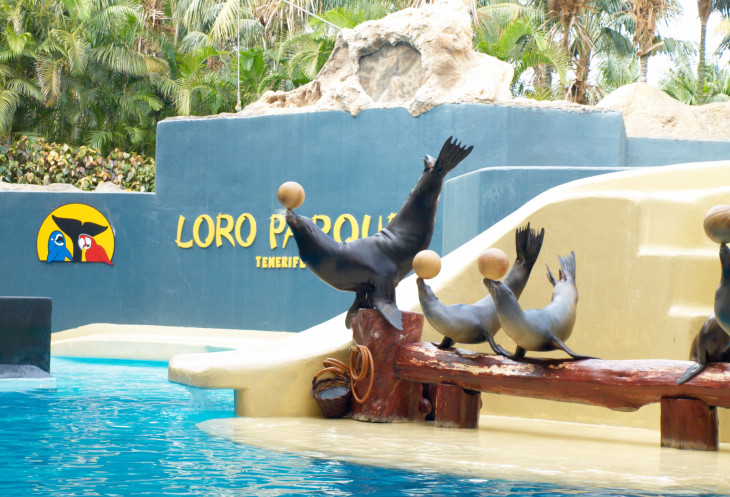 Чтобы попасть в Лоро-парк, надо вернуться и перехать трассу на другую сторону (ближе к морю) и далее по указателям. Примерно до 11 утра место на парковке еще можно найти (стоимость 2,4 евро с машины). В целом меня совсем не впечатлил этот зоопарк. Да, он большой, ухоженный, в нем собранна самая большая в мире коллекция попугаев, но все же это зоопарк.. С тесными клетками и грустными животными. Пожалуй, можно сходить в вольер с пингвинами и в океанариум. Единственное, ради чего действительно стоит сюда приехать, - это шоу с морскими мелекопитающими: косатки, морские котики, дельфины. Они повторяются несколько раз в день по определенному расписанию. Мы смотрели в таком порядке: