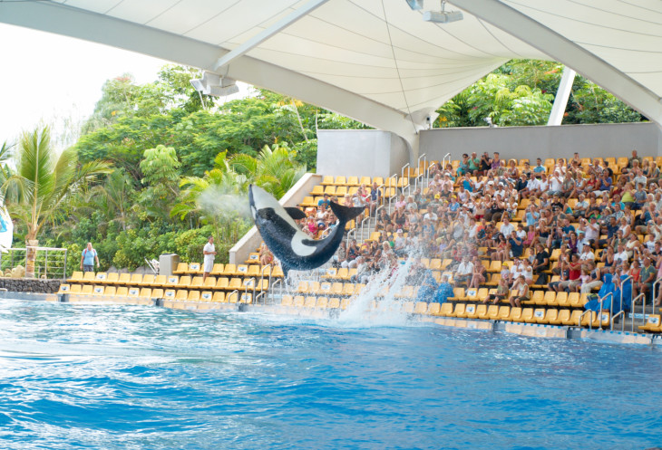 Конечно, самое интересное и впечатляющее - это косатки! И если вы сядете в первые ряды, будьте готовы, что умные животные специально обольют вас водой с ног до головы. На этот случай можно преобрести фирменные дождивики по 3 евро. Шоу дельфинов тоже приятно для глаза, но многие говорят, что шоу дельфинов в Aqualand в Лас-Америкасе на порядок лучше.