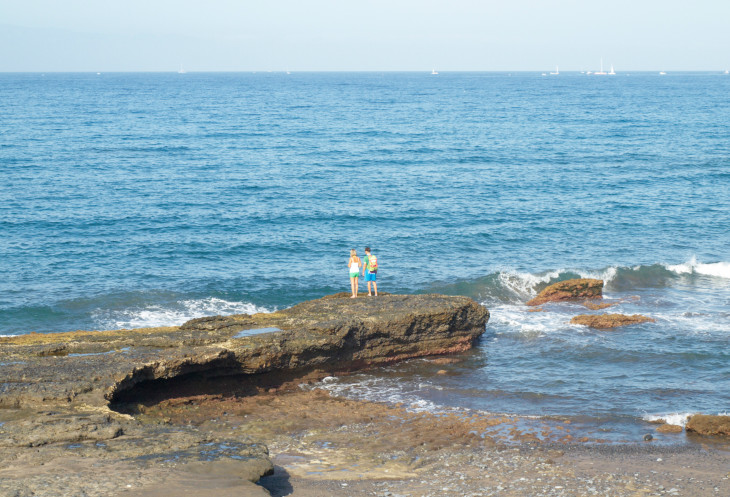Остаток дня мы решили провести в нашем туристическом городе. Лас-Америкас как курорт начал развиваться только в 70-е годы XX века. До этого времени юг острова был ненаселенной территорией с каменистыми подходами к воде. Но благодаря своему уникальному климату (средняя годовая температура +26 градусов, без резких скачков), эту местность решили облагородить: сделали насыпные пляжи и построили множесво отелей и аппартаментов. Песок в Лас-Америкасе серый, так как это смешанный черный тенерифский песок со светлым песком из Сахары. Все пляжи здесь - это небольшие бухточки, и почти на всех есть волнорезы из огромных черных камней. С камней можно попытаться ловить рыбу. Официальное разрешение на рыбалку стоит около 15 евро на год, но вряд ли у вас его кто-то попросит. Мелкую рыбешку можно увидеть у самого берега. Она совершенно спокойно плавает под ногами купающихся людей. Вместо привычной кукурузы и барабульки на пляжах Тенерифе предлагают свежие фрукты и массаж. Есть пляж для серферов (рядом находится playa del Camision). Тут же не далеко есть макдональдс с бесплатной wi-fi зоной. Единственный пляж без волнорезов в этой туристической зоне так и называется Playa de las Americas. В торговом центре у пляжа Playa de las Guevitas расположилось агенство Dam Tenerife. Здесь можно приобрести билет на экскурсии, проводимые на русском языке, а так же обратиться за любой консультацией по острову. Вам с радостью расскажут, куда можно съездить на арендованном авто (как правило, экскурсионные автобусы в таких местах не останавливаются).
