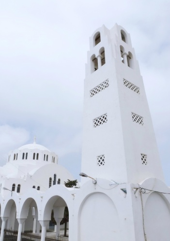 Есть еще одна достопримечательность, не увидеть и не сфотографировать которую просто нельзя – церковь Агиу Мина. Именно она, сооруженная на самом краю скалы, служит рекламным, всегда узнаваемым, символом острова Санторини.