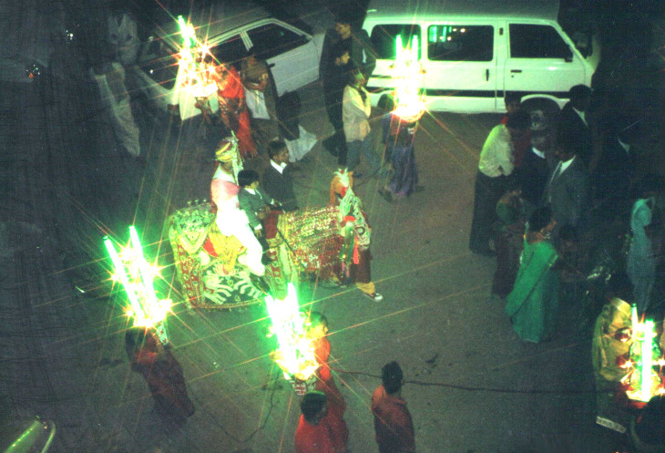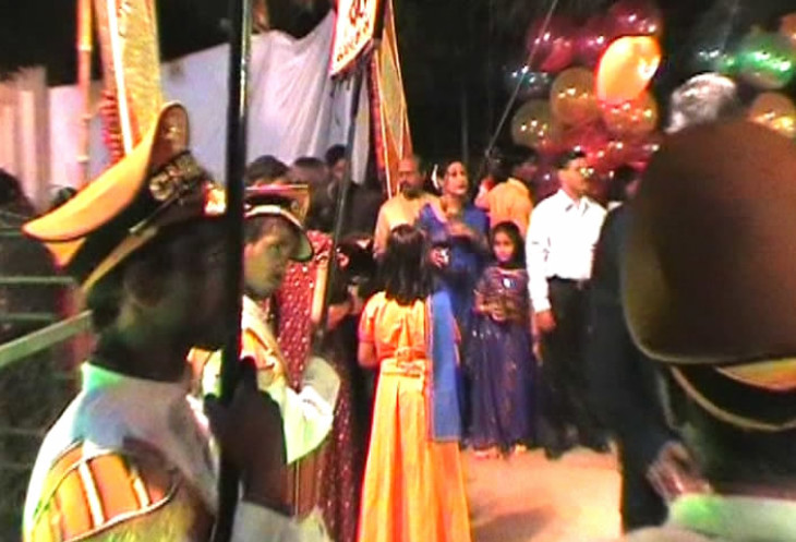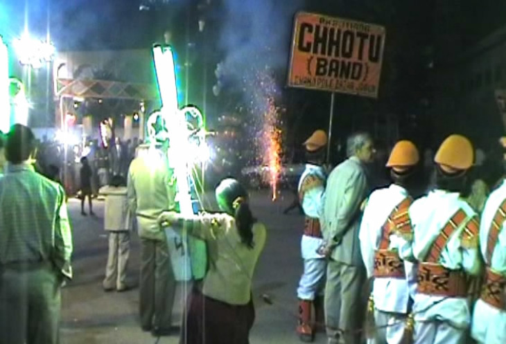 Где-то после 9 часов вечера, отяжелевшие от еды и усталости, мы, вместо того чтобы отправиться спать, решили все же немножко побродить по вечерним улицам Джайпура. Интересно же, как у них тут вечером. Идем себе спокойно, никого не трогаем, но тут вдруг шум, гам, вой каких-то дудок, барабаны бьют, хлопушки взрываются.