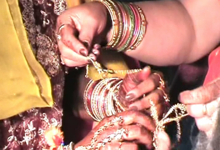 Выясняется, не могли! Невеста пришла сюда в украшениях своей семьи и тут должна снять их, чтобы оставить своим преемницам – младшим сестрам, ну или там еще каким родственницам которые в этих же украшениях сами когда-нибудь замуж пойдут, и сами их опять же в семье оставят, и так далее, и так далее.