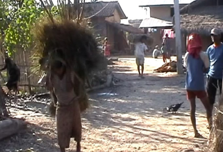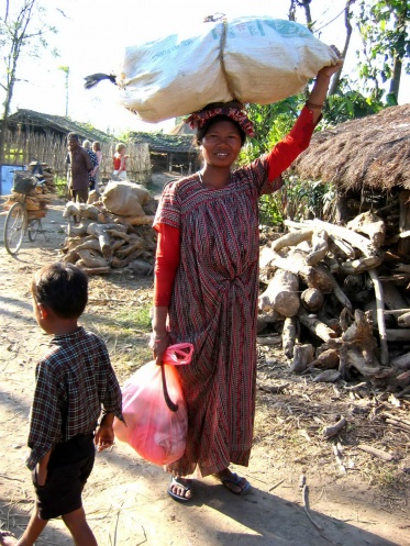 Как водится в таких деревнях, женщины что-то тяжелое таскают,