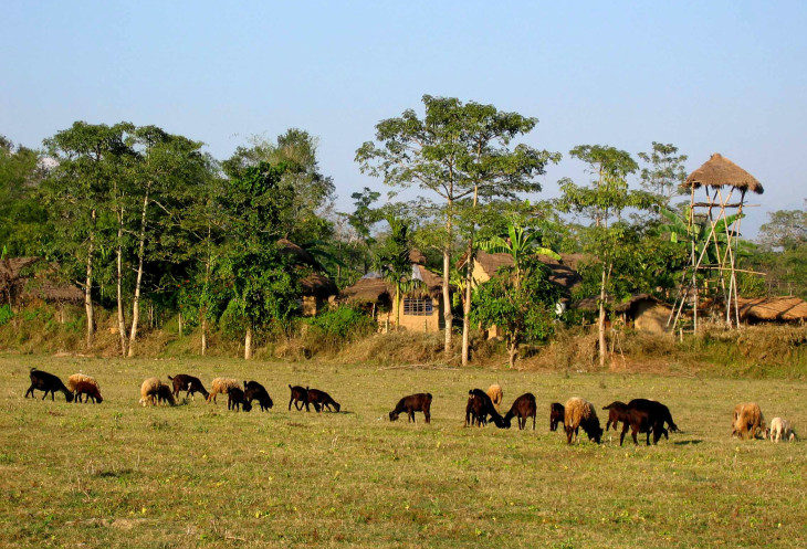 После часовой прогулки высадились возле деревни одного из местных племен, которое называются Тхару. Говорят, правители Непала несколько раз предлагали им переселиться, чтобы освободить заповедные земли, но они отказались. Зато им пришлось смириться с тем, что ним приводят туристов.