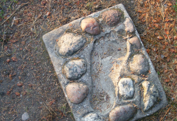 Прогулятся по парку можно по оригинальным тропинкам с отпечаками ступнней и кистей рук.