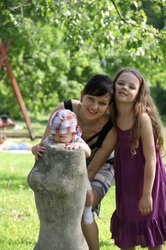 Потом- фотографировались, и папа был занят "композицией", а мама с Настей позировали, я откусил инсталяции голову....думал, не заметят....