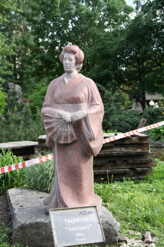И интересная тетя в кимоно, которая стоит у входа в японский сад, с еастоящим маленьким водопадом и беседками.
