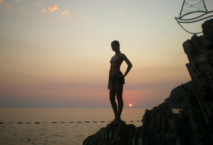 В сам монастырь заходить не стали (одеты в шорты и топы были), фотографировать мне дочка не дала – ребёнок, кажется, обчитался путеводителей, и в голове у неё получилась полная каша… С округлившимися от ужаса глазами она шипела мне «здесь фотографировать нельзя» и тащила меня за руку к лестнице, по которой мы начали наш спуск к морю)))