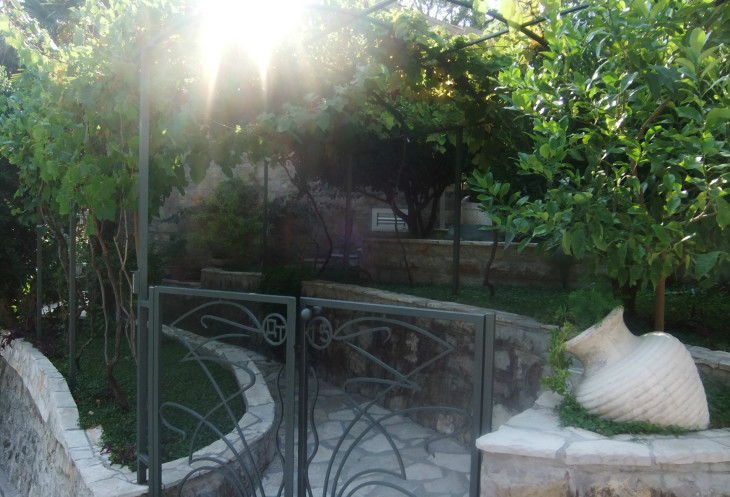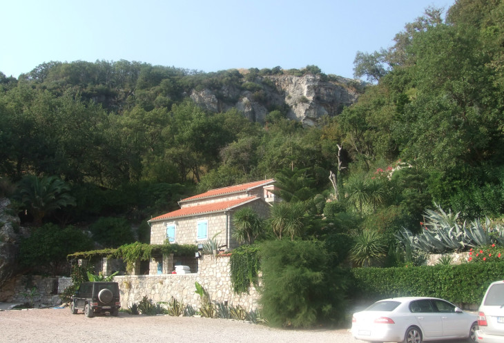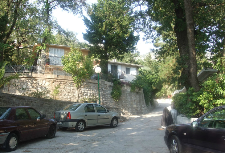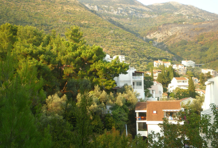 Лесенка закончилась довольно быстро – как оказалось, это был спуск к шоссе… По нему мы и пошли вниз. До моря – ещё далеко… Режевичи – очень небольшой поселок с резким спуском к морю. Есть парочка навороченных отелей – они первое, что попалось нам при спуске к морю от шоссе. Но, а в основном – типичные домики в черногорском деревенском стиле, с кучей самой разнообразной средиземноморской растительности в садиках рядом с ними…