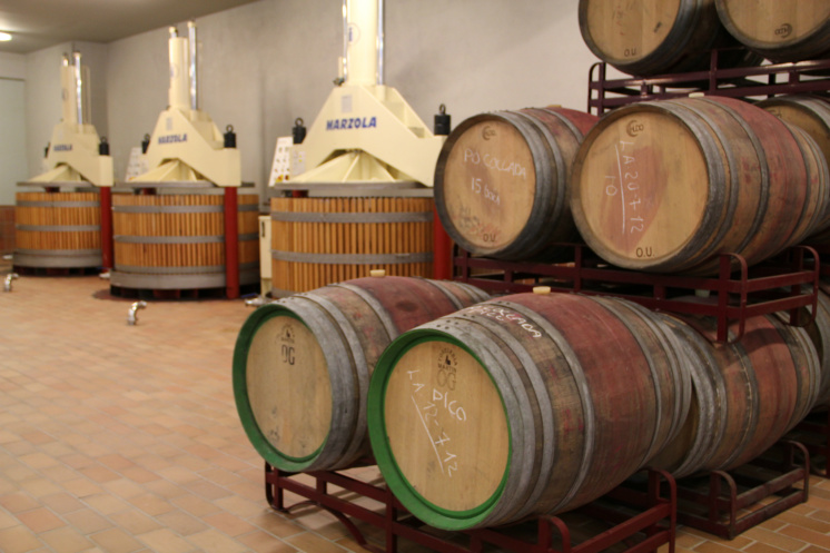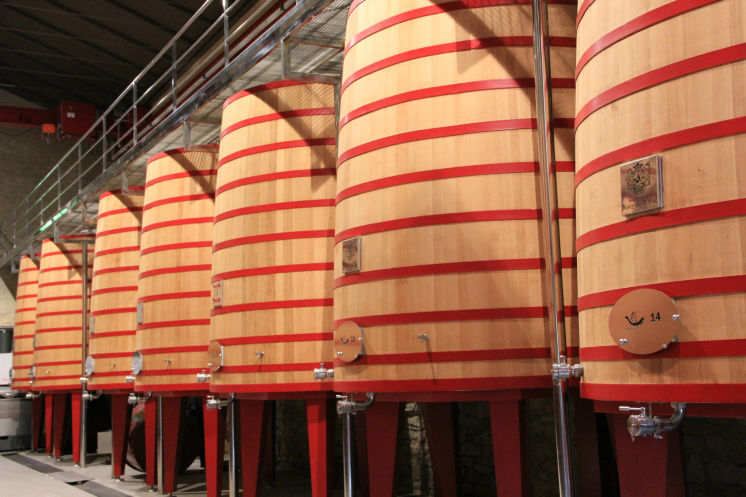 Экскурсовод рассказывала о каждом этапе производства вина, подчеркивая, что это очень современное производство. Но стальные емкости фотографировать не интересно, поэтому я запечетлел старинные емкости для хранения вина.
