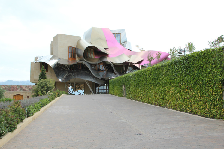 Второй день - 5 августа 2012 года был самым спланированным в нашем путешествии. Уже в 10 утра нам надо было быть на экскурсии на виноднельне MARQUÉS DE RISCAL. Ночь мы провели в отеле в бывшем монастыре и быстро собравшись отправились в путь. Дорога заняла около 20 минут и за несколько минут до начала экскурсии мы были на месте.