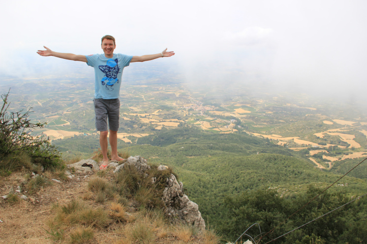 Серпантин дороги ведет нас наверх в горы. Мы не могли не остановиться, чтобы не полюбоваться видом сверху. Мы уже практически в облаках, а земля внизу и похожа просто на карту с развилками дорог и участками сельхоз угодий. Дух захватывает!
