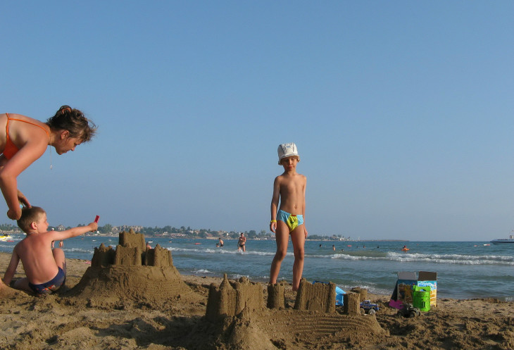 На прекрасном песчаном пляже у моря к этому времени дети объединялись строительством всевозможных лабиринтов и сооружений из песка. Для родителей прекрасная возможность познакомиться, поделиться информацией и слегка отвлечься от поуши занятых детей.