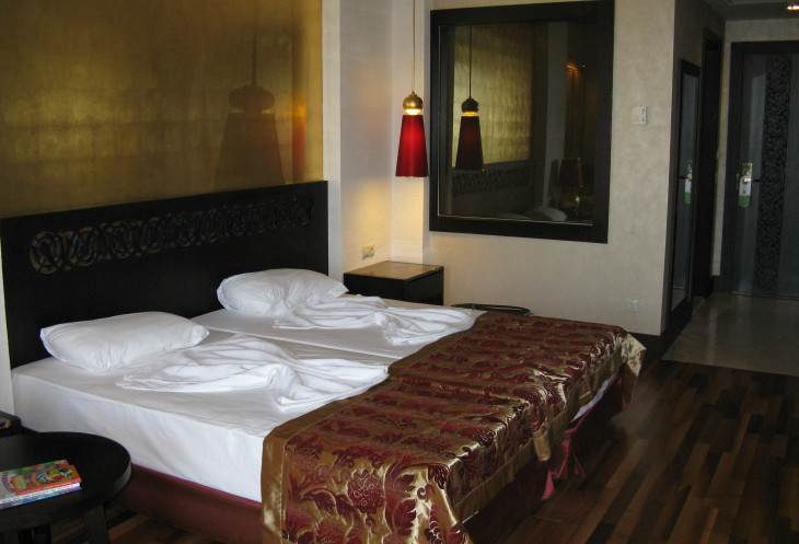 Номер нам дали быстро уже в 14:20. Наш опыт – сначала осмотрись, потом устраивайся удобней, сохранил нам настроение и время. Во избежание любых расстройств, без малейшего анализа, представленного нам места для проживания, не дожидаясь нерасторопного носильщика, значимо расставившего в существенную очередь чемоданы и давшего нам понять - идти пустыми в свой номер и ждать багаж, быстро подхватив всё в руки, взбежали пулей по лестнице на 5 этаж.