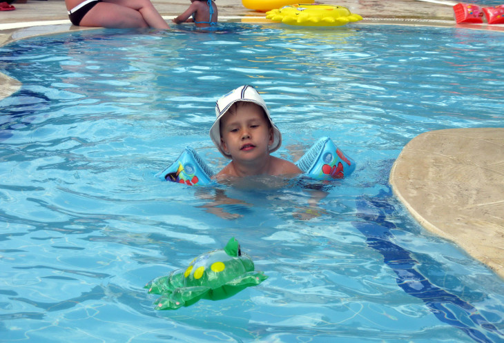Освежившись в душе, каждый из нас нырнул в понравившийся бассейн, на свою глубину. Сын в 0.40м в восьмёрку, мама через перешеек рядом с сыном в 1.40м, а сам я погрузился прямо рядом с душем в самый глубокий участок 1.80м, едва достав носочками ног дна бассейна.