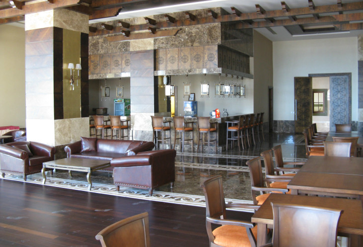 Внутренняя отделка всего здания выполнена очень добротно и красиво, из качественных натуральных материалов, индивидуально выделяя и подчёркивая каждый зал.