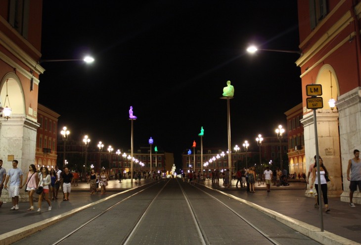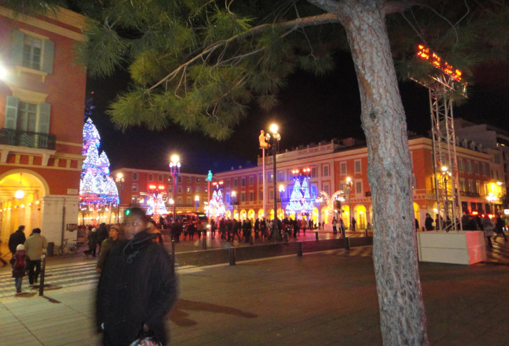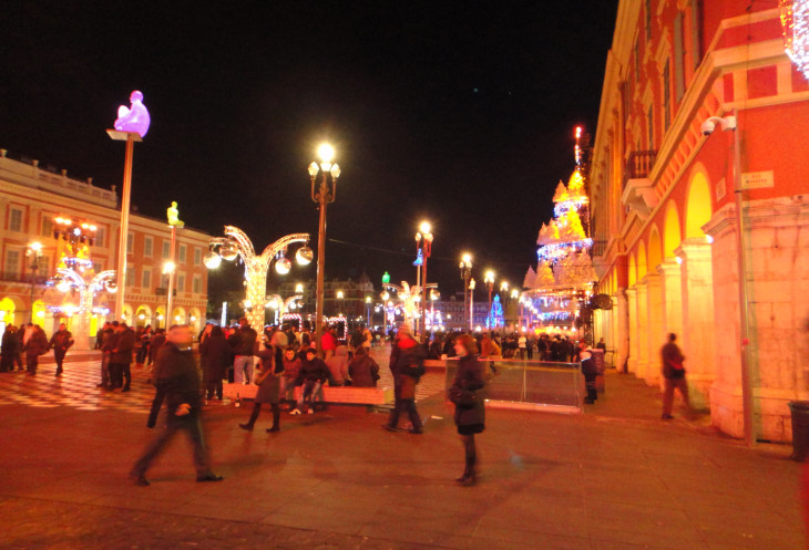 Если Вы вышли на Массену вечером или в выходной день в теплое время года, то скорее всего вокруг Вас будет много танцоров, художников и музыкантов, подрабатывающих, развлекая прохожих. Если Вы вышли сюда в период с конца ноября до середины января, поздравляю! Вы в самом центре рождественского настроения Ниццы. Стоит прийти на площадь вечером: праздничные декорации смотрятся просто волшебно. С середины декабря до начала января здесь проводится рождественская ярмарка, при возможности обязательная для посещения!