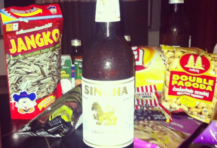 В итоге на этой фото все то, что мы накупили там. Арбузные семки оказались твердые, как камни. Семечки подсолнуха в Тае-сладкие(и почему я думал, что они тут будут, как у нас солеными? Наивный человек). Арахис был в скорлупе и сильно мусорил, мы его выкинули. От кокосого молока Диана долго плевалась. Фисташки безвкусные. В общем все что купили, все выкинули. Ыыы. Оставили и испили только пиво. Которое прочиталось нам, как Синька.