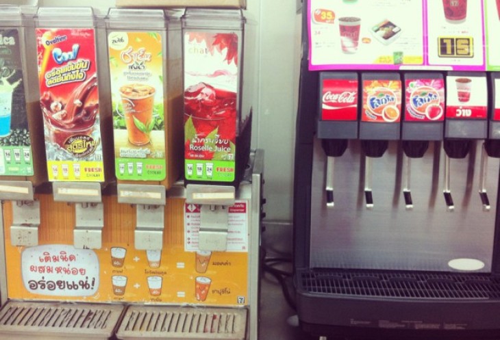 Стоят аппараты с разного рода соками. Налил в стакан, пошел оплатил, выпил. Все счастливы и беззаботны. Мир во всем мире!