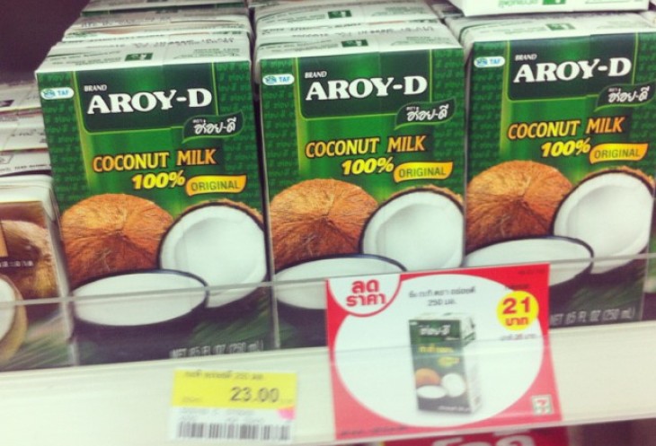 Кокосовое молоко продается в тетропаках разного калибра, как у нас коровье. Вообще, к слову, Самуи считается кокосовым островом - материал из Википедии, не я придумал!