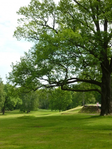 На глаза попался милый голубой трамвайчик. Оказалось, это экскурсия в неизвестный нам парк «Александрия». Здорово! Поедем! Слегка покачиваясь, трамвайчик увозит нас от фонтанов, людских толп и суеты вглубь леса. Гид торжественно рассказывает о парке.