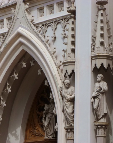 На резном золоченом иконостасе готический орнамент. Настенную живопись заменяют витражи.