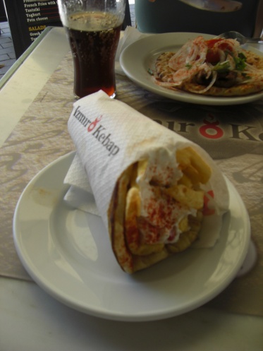 Если вы желаете перекусить вкусно, а самое главное быстро- тогда вам в спасение Гирос. Это аналог нашей шаурмы. В обжаренную с двух сторон питу можно заказать мясо или курицу, любые овощи. Очень сытный перекус, спасает во время экскурсий, когда нет времени на кафе. И цена смешная- всего 2,5 евро)