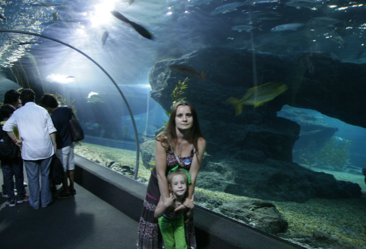 Прикольно смотрелся аквариум в стиральной машине, мини-медузы, подсвечиваемые разным светом. Посмотреть там есть на что. Все сделано со вкусом! Впечатлили огромные карпы-карпищи, просто огромные (минимум метр в длину). Я понимаю, что они старые и не вкусные, однако красивые. Тут же предлагается рыбный педикюр. На выходе «случайно» расположился сувенирный магазин. А мы с ребенком! Вот кровопийцы, знают слабые места туристов!