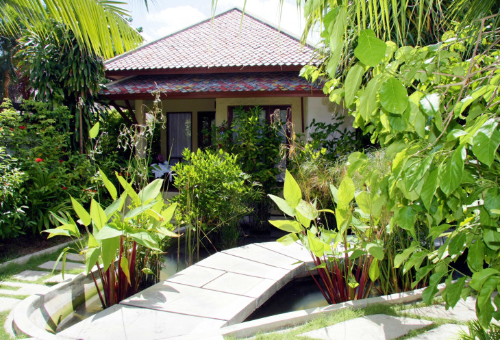 Центральная дорожка, как змея, петляет из стороны в сторону, между домиками, плантациями зелени и искусственными водоемчиками с рыбками. Отель был практически пустой. Домик достался нам, по моему мнению, самый лучший. В принципе они там все одинаковые. Правда есть два джуниор-сьюита, но они совершенно неудачно расположены: около бассейна (никакого уединения там не получится). А наше пристанище оказывалось сразу за ними. От пляжа 15 секунд босиком!