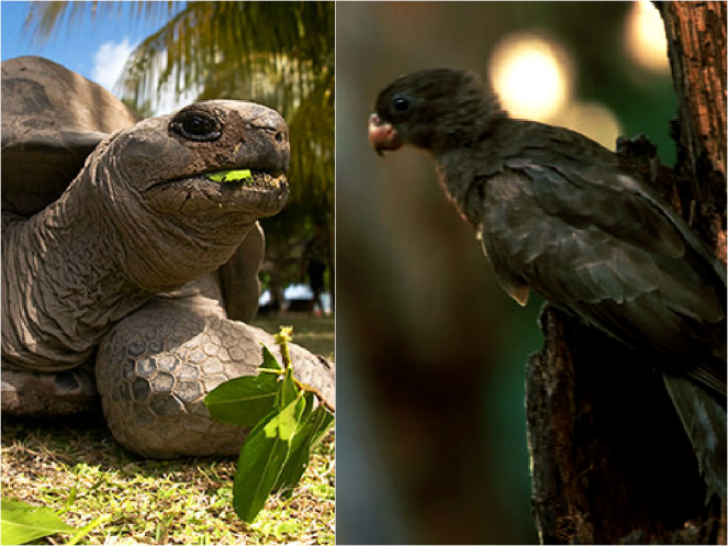 Почти половина территории Сейшельских островов – это природные заповедники и национальные парки. Можно сказать, что острова – живой музей естественной истории. Здесь сохранилась эндемичная флора и фауна, включая сейшельскую кокосовую пальму, гигантскую черепаху и черного попугая с острова Праслен, увидеть которого, по поверью, к большой удаче и счастью.