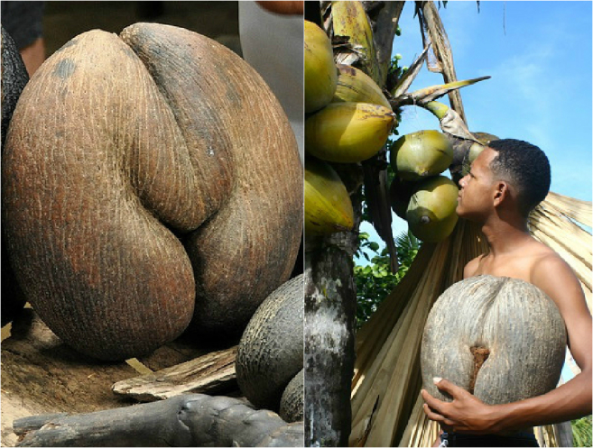 Морской кокос, Coco de Mer, национальное достояние Сейшельских островов. Даже местный таможенный штамп, который ставят в паспорта туристам, повторяет его форму. Покупать Coco de Mer можно только в магазинах, которые выдают разрешение на вывоз. Вес очищенного ореха- 4-5 кг, стоит этот уникальный и популярный сувенир немало - 400-500 евро. И это не предел: известен прецедент, когда в прошлые века за один морской кокос предлагали 14 кг золота (4 тысячи дукатов), и сделка была отклонена. В те времена считалось, что Coco de Mer спасает от всех болезней, излечивает от любых ядов, уберегает от врагов, дарит богатство и могущество.