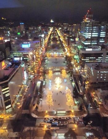 Как это без шопинга, ну не как. Мне было бы интереснее больше узнать о стране, посмотреть достопримечательности, а по магазинам и дома могу погулять. Но решение было принято большинством. Экскурсия закончилась на Бульваре Одори Кэн в Саппоро. Там была восхитительная зимняя иллюминация. Мы поднимались на смотровую площадку, размещенной на высоте телебашни. Надо сказать там чувствовалось пошатывание башни, было страшновато и долго на площадке не задержались.