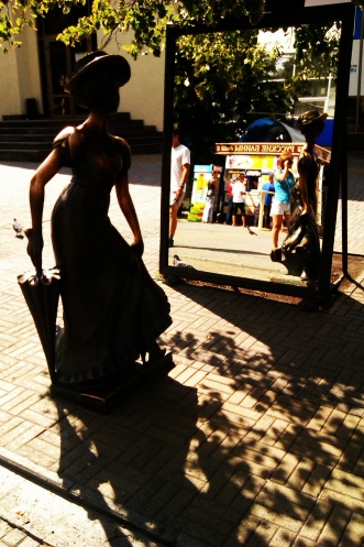 Опрос местных жителей: «Куда податься?» был на удивление единодушным: «ул.Кировка, у нас там очень красиво». Улицу я нашла довольно быстро и сразу пожалела, что поленилась взять фотоаппарат. Столько памятников и памятничков, собранных в одном небольшом пространстве, чаще всего встречаешь в музее, а тут они составляли непосредственную, живую картинку города.