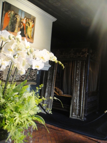 - Комната Луизы Лотарингской очень мрачная, оформлена атрибутами смерти: черные потолок и стены, расписанные белыми костями, слезами, лопатами и заступами. В небольшой рамке - портрет Генриха III, по которому так скорбела Луиза.